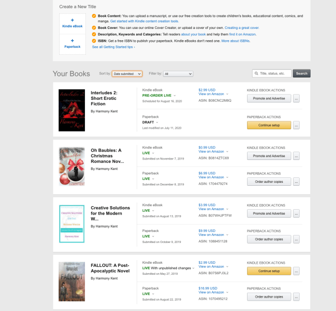 Today, Harmony Kent shares Part 13 of her super-helpful series, How to Publish With KDP. This one is focused on uploading a print book to Amazon, and I think you’ll find it well worth checking out. Please consider passing it along, too, so others can take advantage of this information. Thanks, and thanks to Harmony for this great series! 🙂