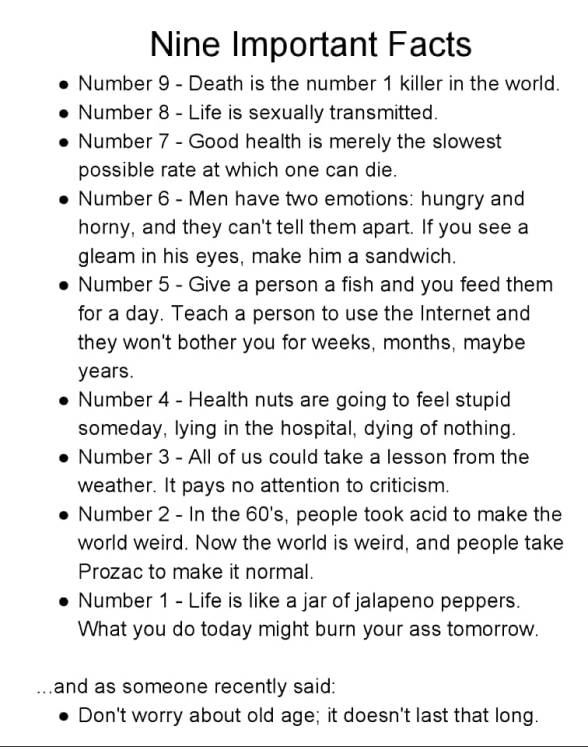 These are wonderful, Marcia – especially the important facts. So many are true!