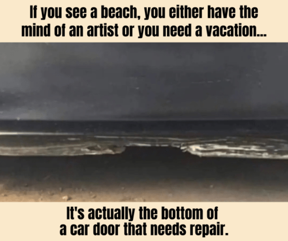 I saw the beach, too. It took me a minute of careful focusing before I could clearly see the damaged car. 😀