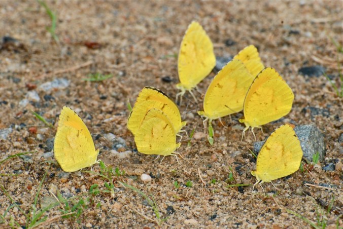 That’s because butterflies generally don’t form up into groups like a flock of birds or a herd of bison. Sometimes butterflies will be drawn to a patch of damp soil such as on a dirt road. Experts on butterfly behavior say that they are seeking minerals that they can’t get in flower nectar.