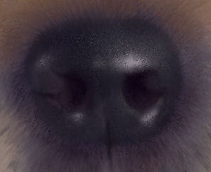 Close up of nose and eye detail, so you can see how it looked as I was working on it. This isn’t photo manipulation, btw, but stroke by stroke “painting” just as I would have done with wet paints.