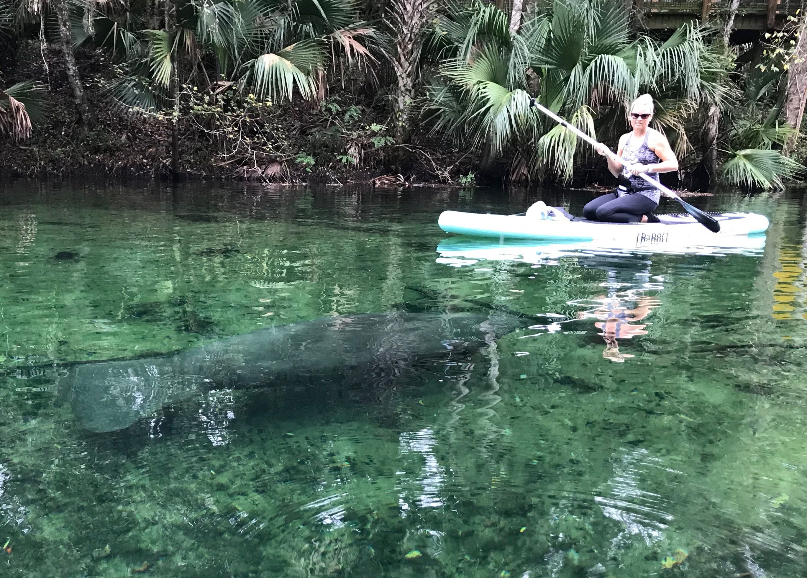 Happily, the rain and wind have disappeared from this area, the sun is out again, and if I had the energy to get in my canoe, I could head out on the river just like this gal. (If you look close, you can see the manatee she’s watching.)